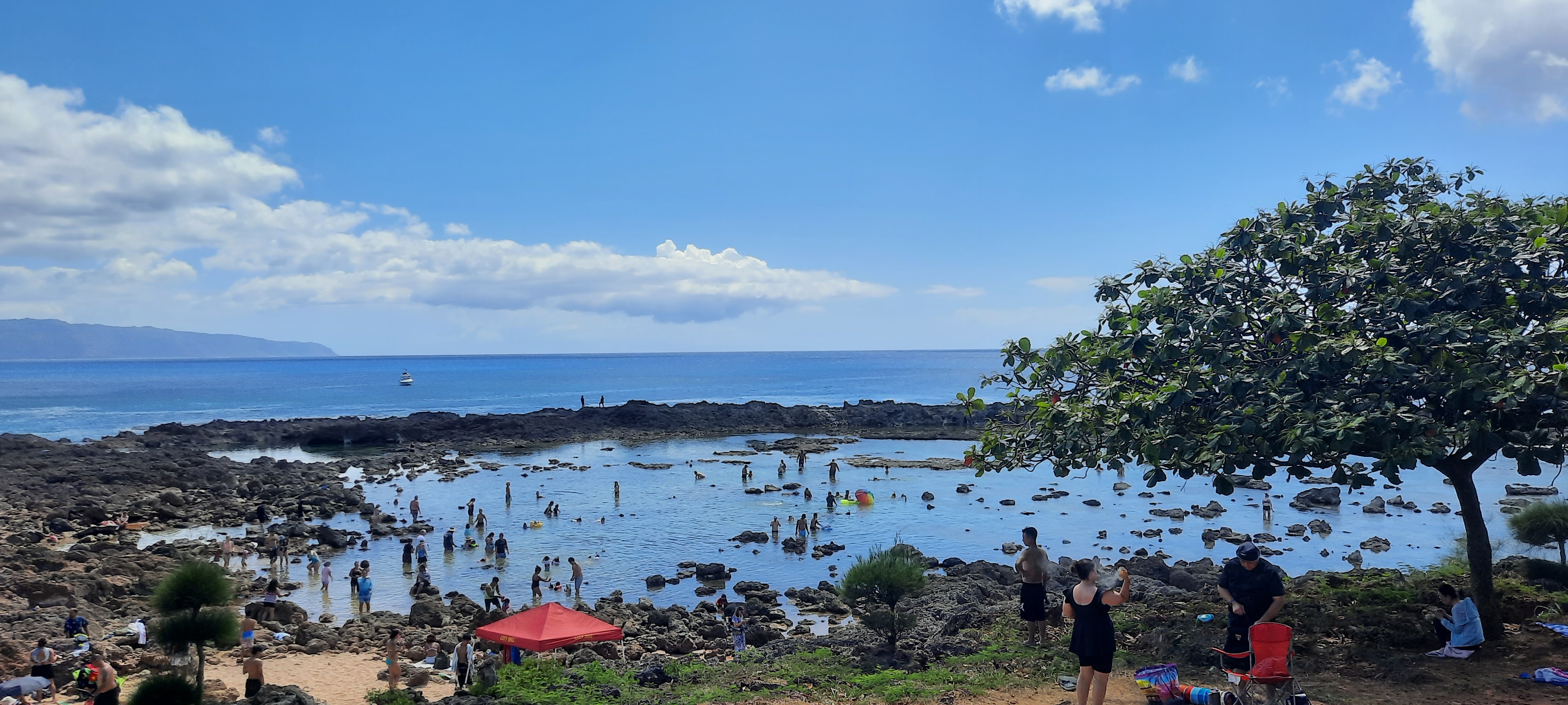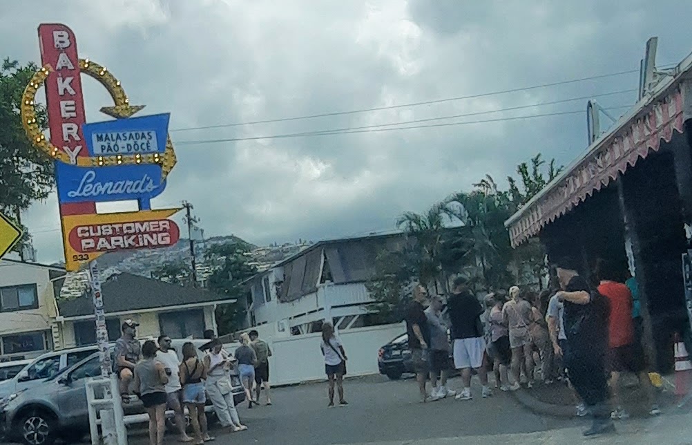 What says Hawaii more than a pineapple, and when in Oahu, a visit to the Dole Plantation is a must. So the next morning we made a beeline for the plantation. One needs to get there early to beat the crowds, specially the long lines for the tour, after a short trip and the of course getting some swag at the store (including a Dole Whip) it was time to head out and explore more of the north island. We were headed to Waimea Beach, but there was a slow down and we made a short detour to the surf town of Haleiwa, with its many quirky shops and of course the food trucks. We had huge bowls of fresh fruit, walked around the town before heading back to the highway. It was on to Shark’s Cove, the cove is nice and a good spot of snorkeling, but it was too crowded and more importantly we did not have water shoes, and there are really sharp lava rocks, so we did not stay long but all in all its a nice place to stop for a little. For lunch we stopped at the Turtle Bay food trucks, despite it being really warm we had an enjoyable and relaxing lunch, next up on the itinerary was Kaneohe Bay, we stopped at one of the beaches, got caffeinated and headed back to Waikiki. After a little rest, we headed to the Tiki’s Bar and Grill for mom’s birthday dinner, more Mai Tai’s, Pineapple glazed ribs and some great flan capped a fun filled day.