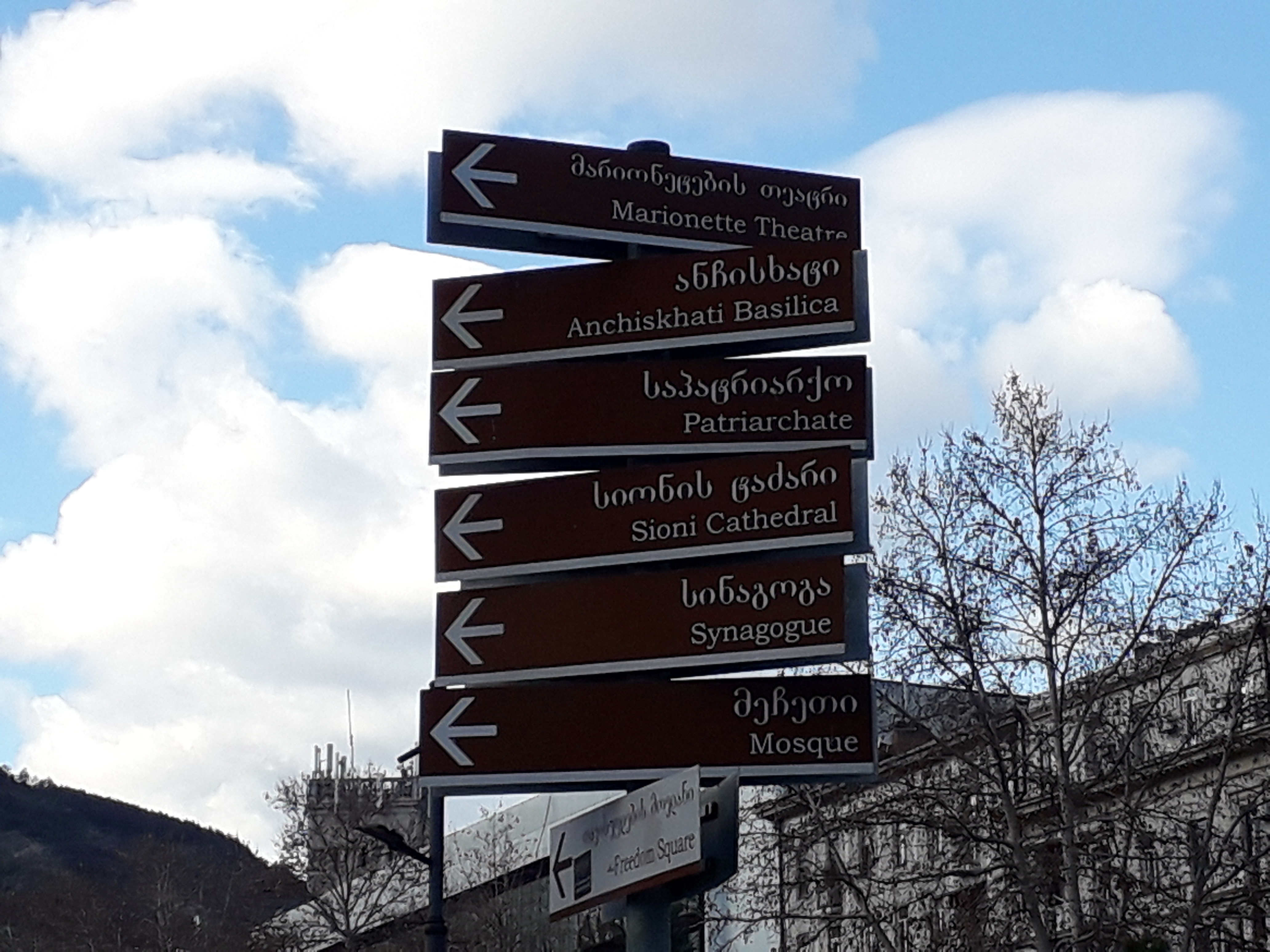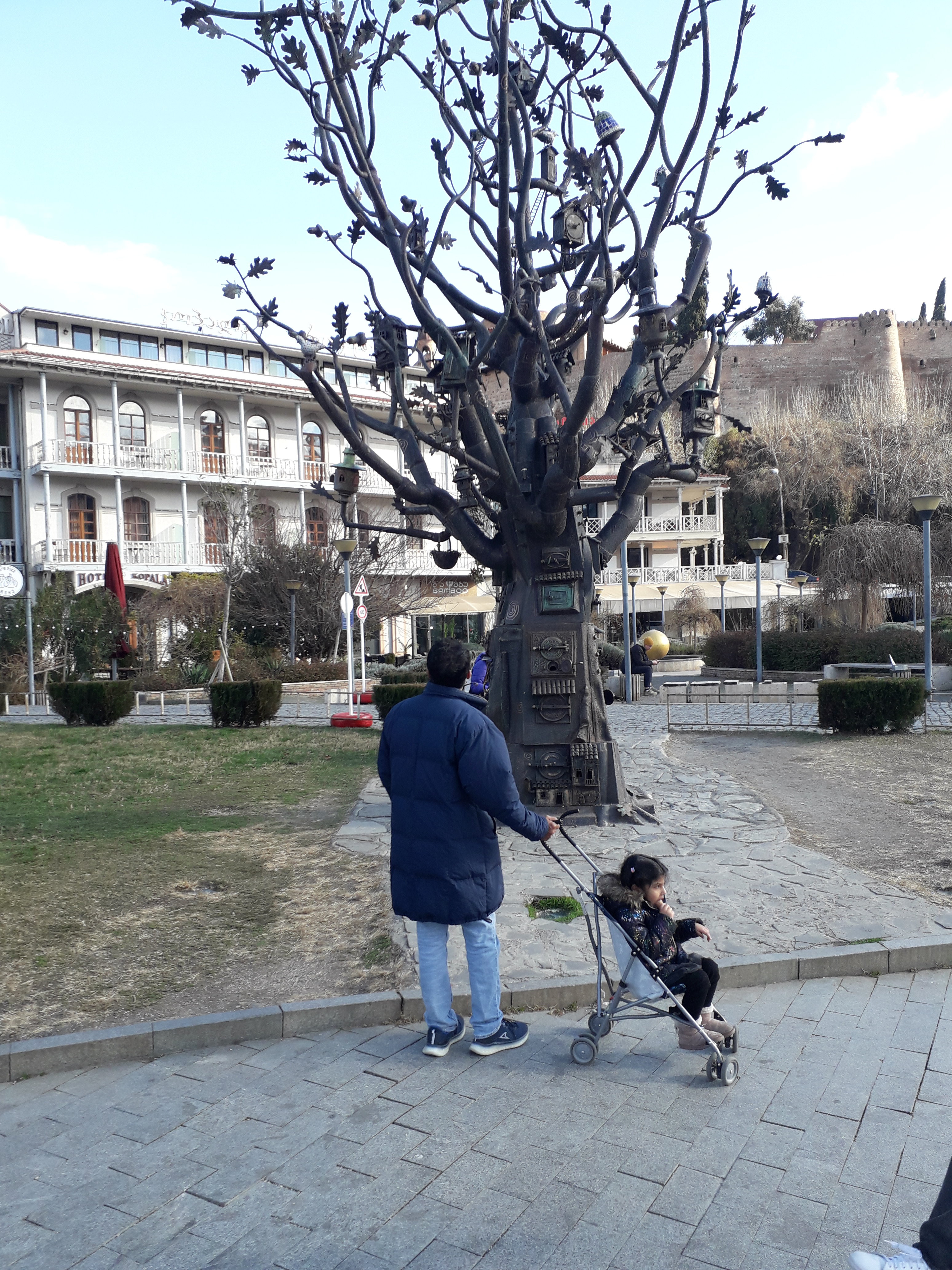 We had booked a boutique hotel, Villa Mtiebi in the old town area near the Kura river, by the time we got there it was already dark. The old town like all such areas has very narrow roads, and at one point the street got so difficult to traverse that I thought that we were lost, only to explore the last 100 yards on foot to see the street widen and find our hotel. The hotel itself made the search worth our while, Villa Mtiebi is a refurbished old villa, which has been redesigned with a lot of attention to detail and love, I would highly recommend it to anyone who wants to stay in this part of town. With directions from our hostess we headed out for dinner to Meidan Square, the area is rather touristy but there are some very good restaurants there. Although the food in Georgia is generally very good and not too expensive, the restaurant we tried, Seidabadi was unfortunately neither, the only redeeming feature was the nice ambience, they really need to up their game. A couple of days later we tried “Restaurant Hide‘ nearby, we perhaps had our best dining experience in Georgia there, great food and service at a very reasonable price. The next morning, after a big breakfast at our hotel, we explored the area around old town, we first crossed the bridge of peace (which has an interesting design itself) headed to Rike Park with its massive hot air balloon and cable car to Solalaki Hill overlooking the National Botanical Gardens. After a long walk exploring the area, with its many interesting art installations and murals we headed to Liberty Square. We had to get a few things so made a beeline to the Galleria Mall, as I was climbing on the steps leading to the mall a bunch of teenaged kids surrounded me and literally clung to my arms and legs, asking for some money, chanting ‘One Lari, One Lari’. With a bit of effort I managed to get free enter the mall. I had stashed away my wallet and cellphone in an inner pocket but my reading glasses which I had kept in an outside pocket got stolen in the confusion. I later found out that this has unfortunately become a regular occurrence, with these poor gypsy kids forced to make this harsh living, a bit later oI saw a man kick and punch one of the kids away, this is a distressing situation and needs to be addressed by the authorities. We got some shopping out of the way and had some mediocre Italian food at Silvio d’Italia before heading back to our hotel.