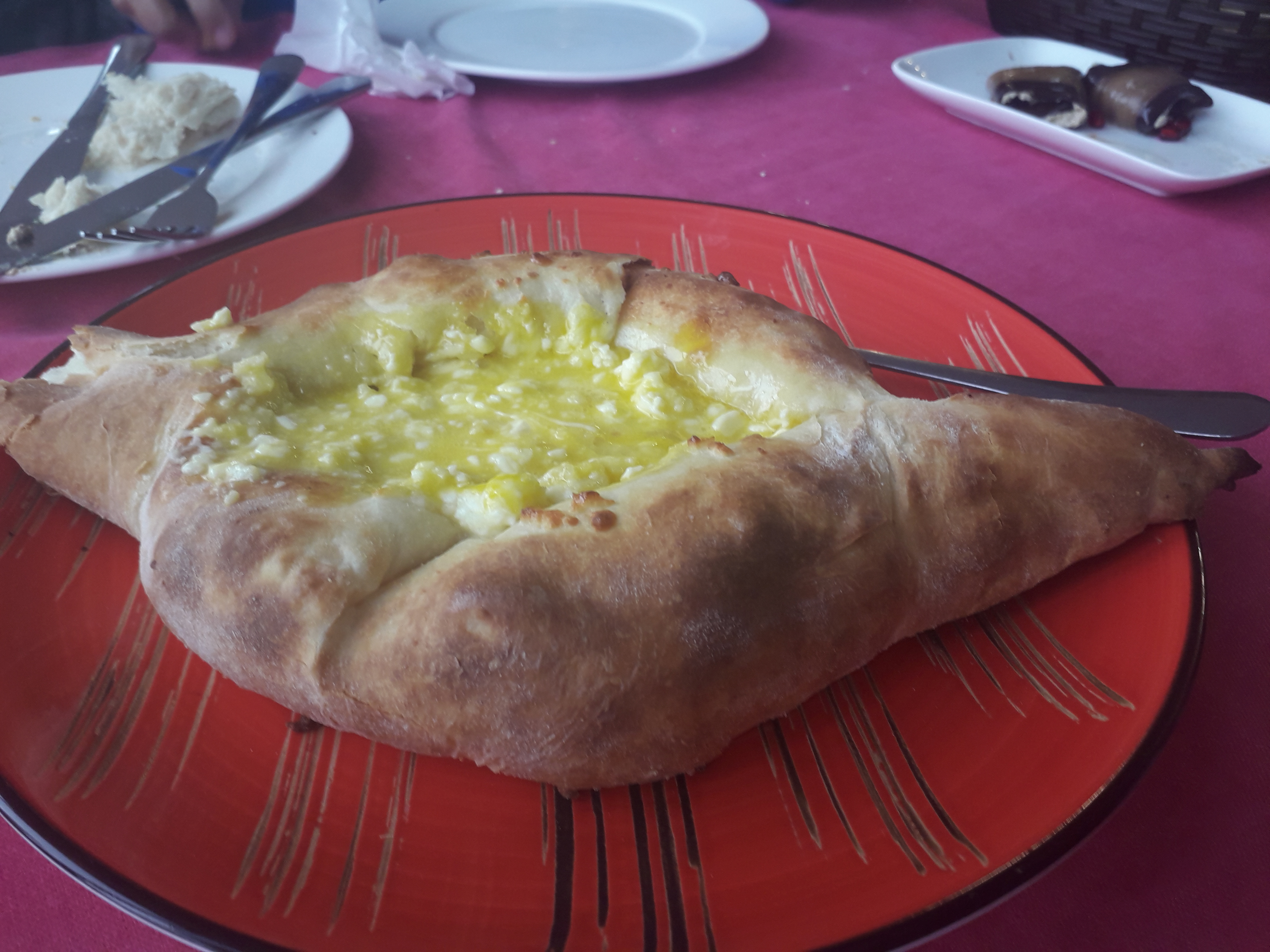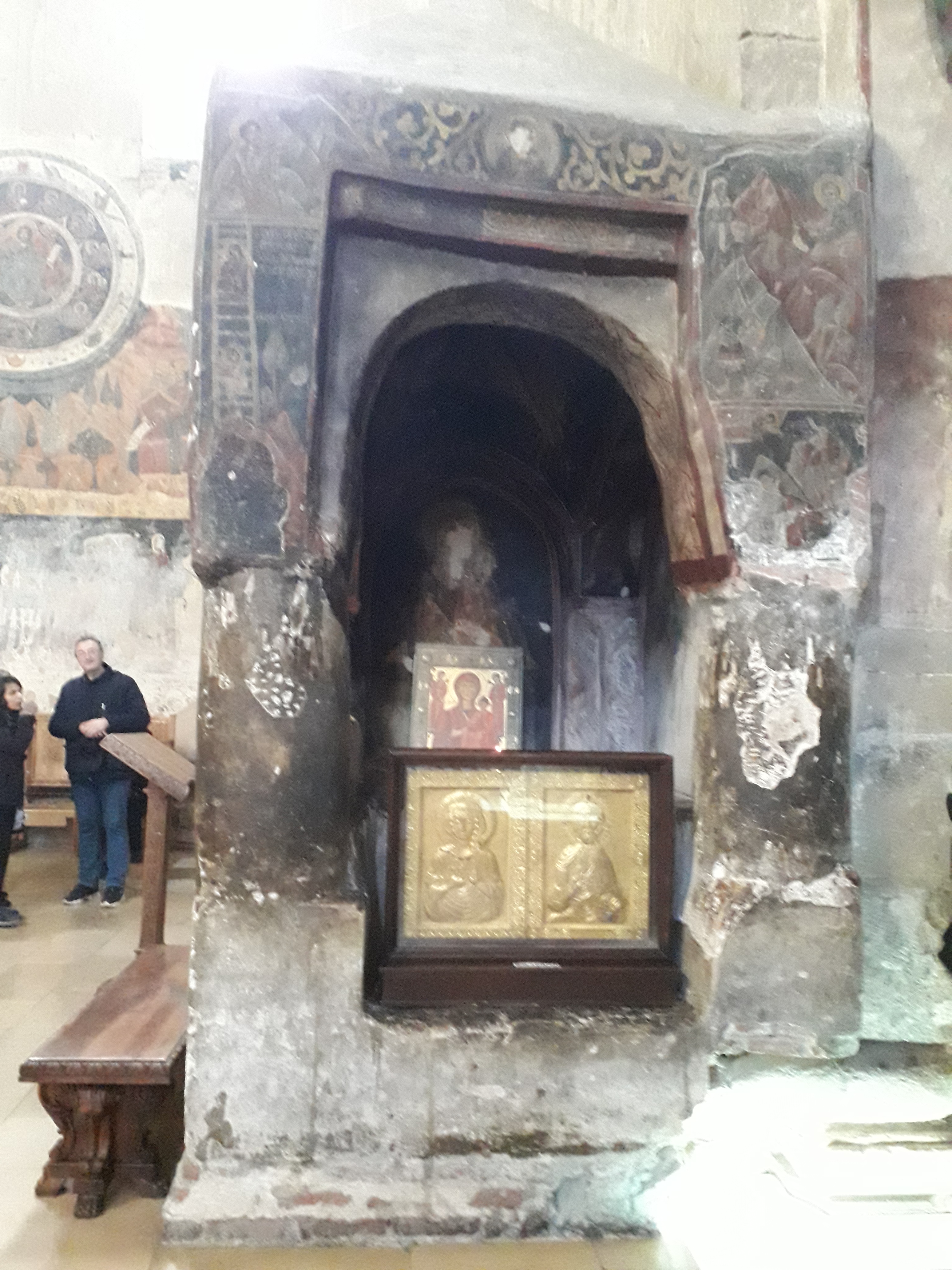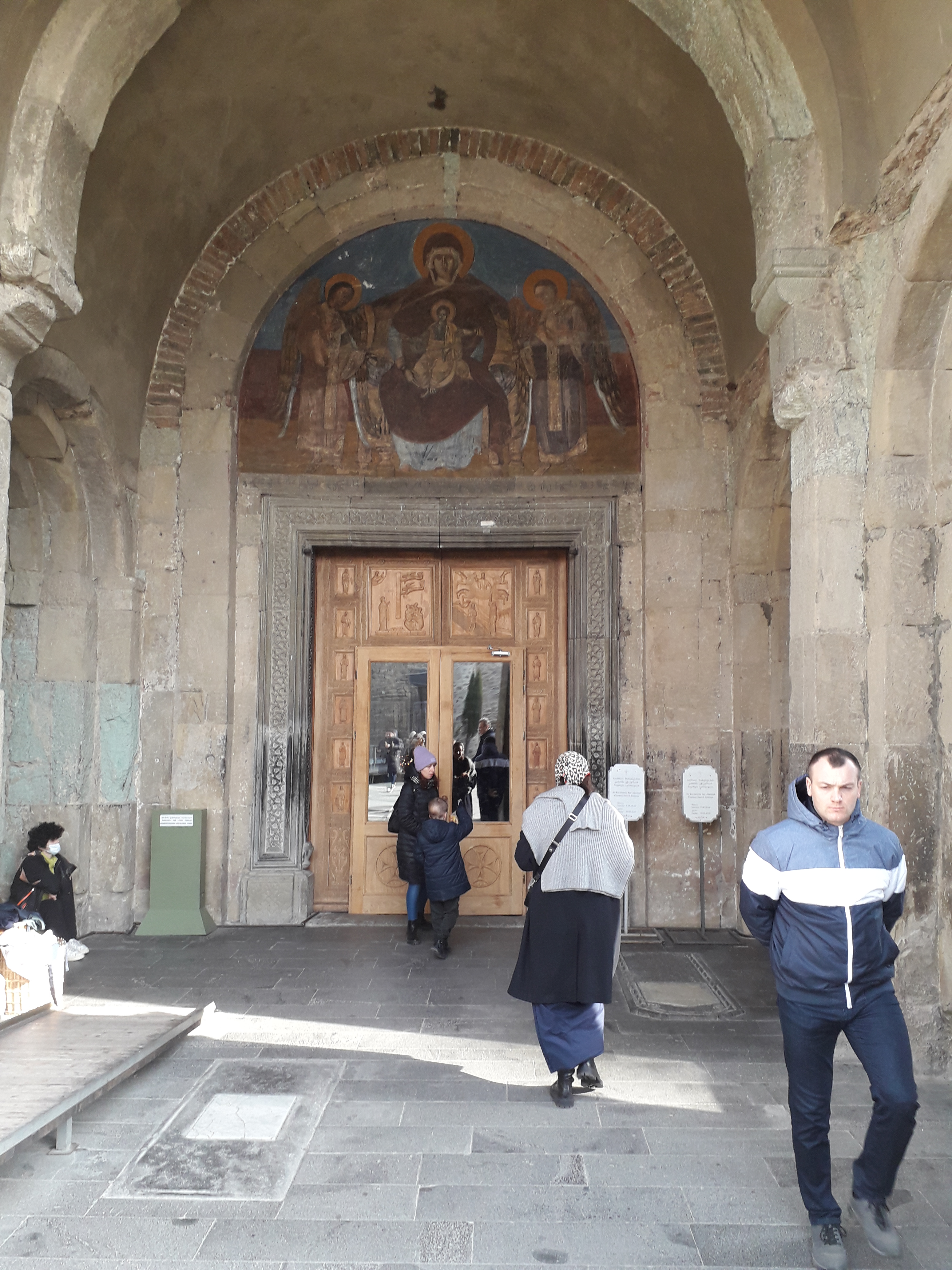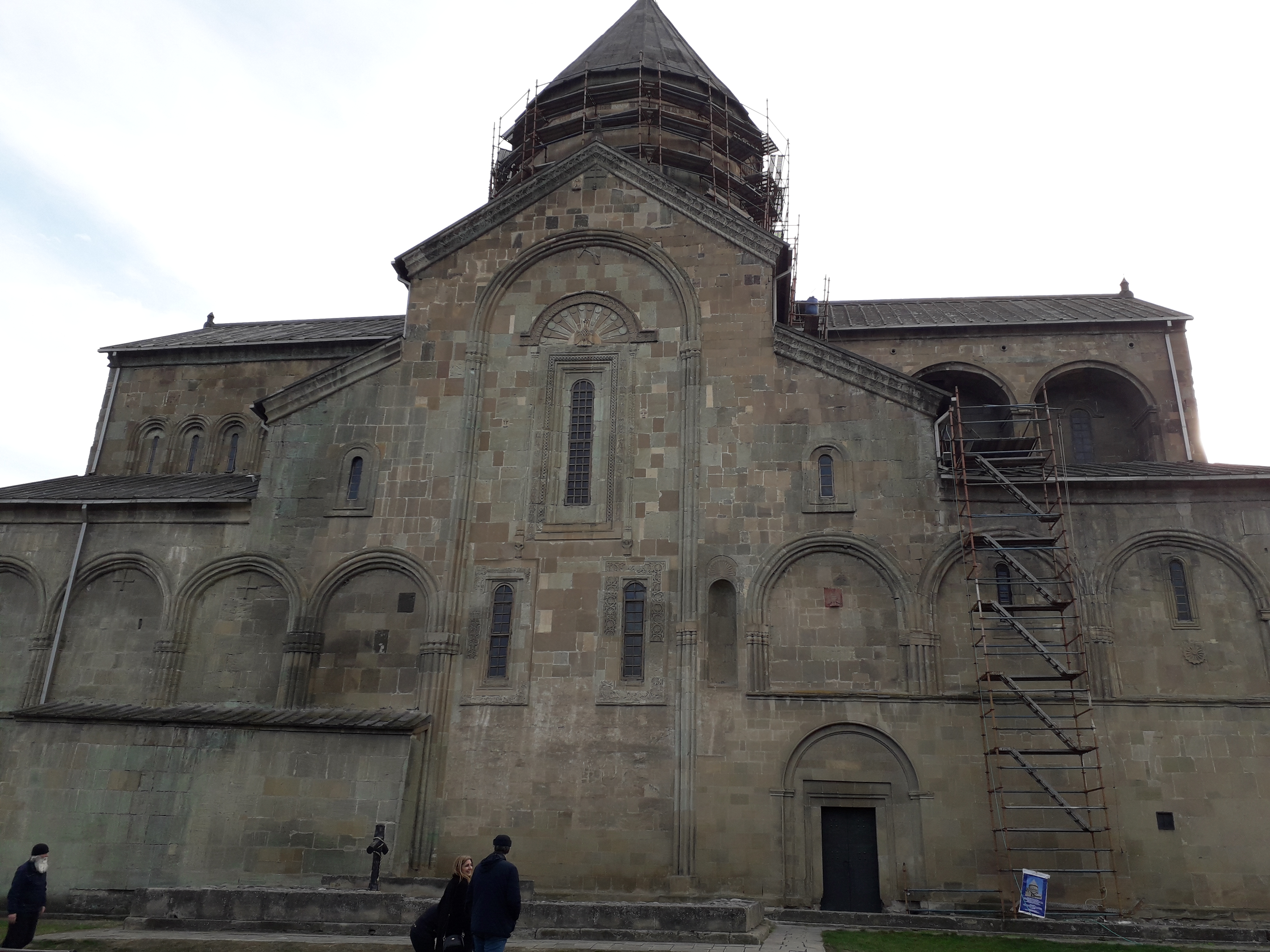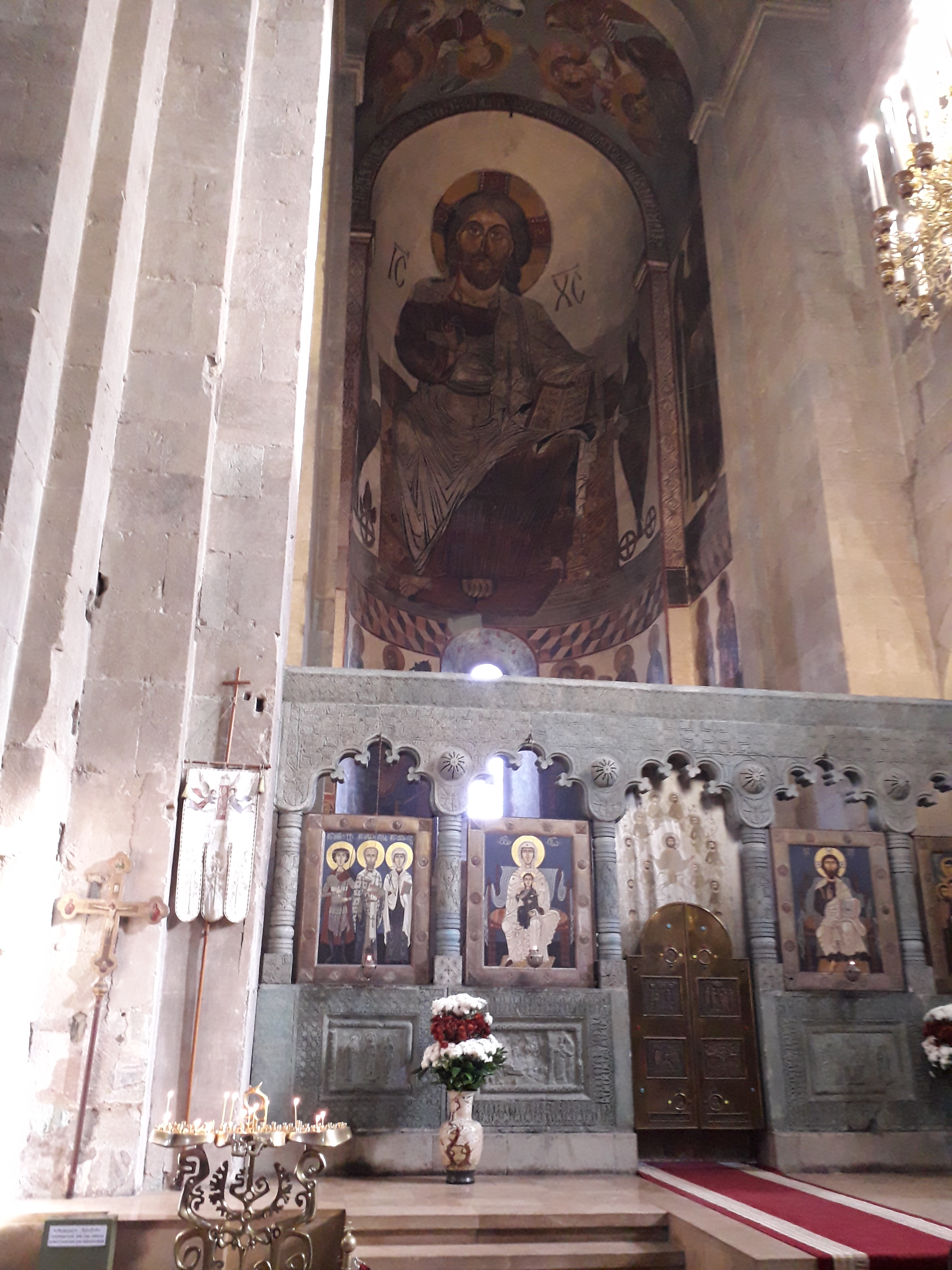 Our friends Alexander and Tina picked us up from the hotel the next morning for a guided tour of the city. We took the Cable Car and saw the Mother of Georgia statue up close, the vista is quite breathtaking from Sololaki Hill and one can see many of the historic sights in the distance from up there. After a tour of the area, we headed out to the ancient city of Mtskheta, the old capital of Georgia. The city itself is has lost most of its old glory to time, however there are several structures of lost most of its religious significance that have been well preserved. These include Svetitskhoveli Cathedral, Samtavro Monastery and Jvari Monastery. The cathedral is reputed have been built by St. Nino, who introduced Christianity to Georgia, it is also one of the places which claims of house the Mantle of Christ. The walls were once completely adorned with Frescos, these however were severely damaged during the time of the Soviet Union, since then, there has been considerable effort in restoring these historic artifacts. Samtavro’s Monastery is situated nearby and is another site to visit when in the area. About 20 min away by car on top of a mountain is the historic Jvari monastery, this is the place where St Nino according to tradition converted King Mirian of Iberia to Christianity in the 4th century AD. After an extended tour of the sites we headed to the famous Salobie Restaurant nearby. Besides the main seating area, there is seating avaiable in log cabins with a central fireplace, we had a wonderful meal with Gerogian dishes like Lobio, Khinkali, Khacchauri and Badrijani and of course plenty of good Georgian wine.