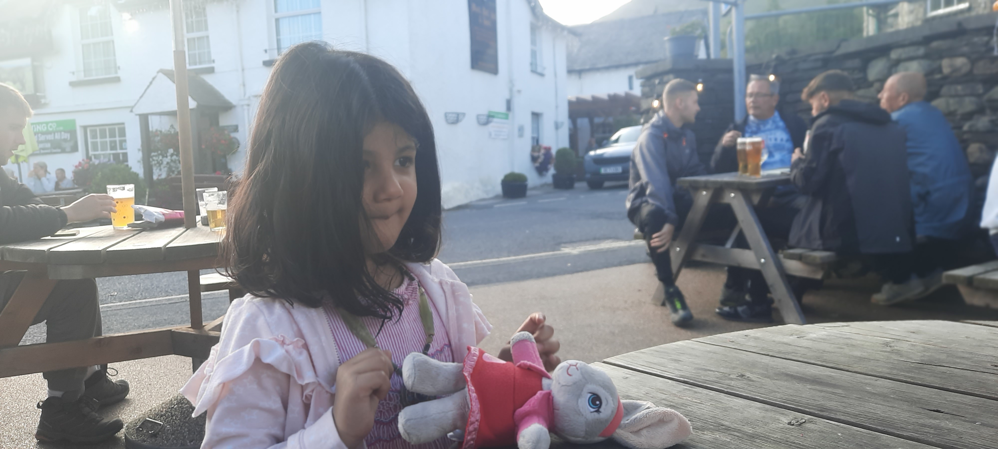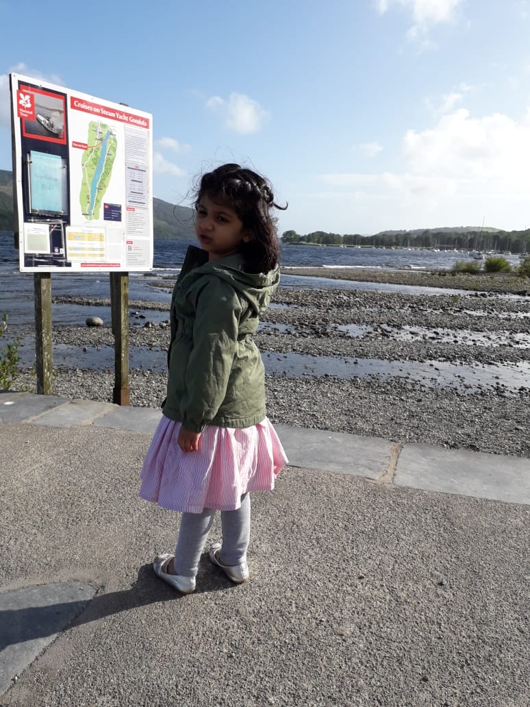The most touristy thing we did was visiting Lake Windermere and the World of Beatrix Potter, this was about a 45 min drive from our cottage. Our host had warned us about the summer rush at Windermere and Grasmere the more touristy areas in Cumbria, we got a glimpse of things to come on the way, with huge tour buses on narrow country roads making driving very hard. Parking was also hard to find and we had to park about a 15 min walk form town. Despite being rather busy Beatrix Potter World was a wonderful experience, specially as Diya is a big Peter Rabbit fan. We also sat through a performance of ‘Peter Rabbit’s Birthday’ at the Old Laundry Theatre. The town itself is very picturesque, and would be a lot of fun to visit during the low tourist season. We explored the area a little, had a bite to eat by the lake and then headed back to our cottage.