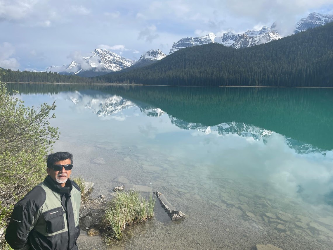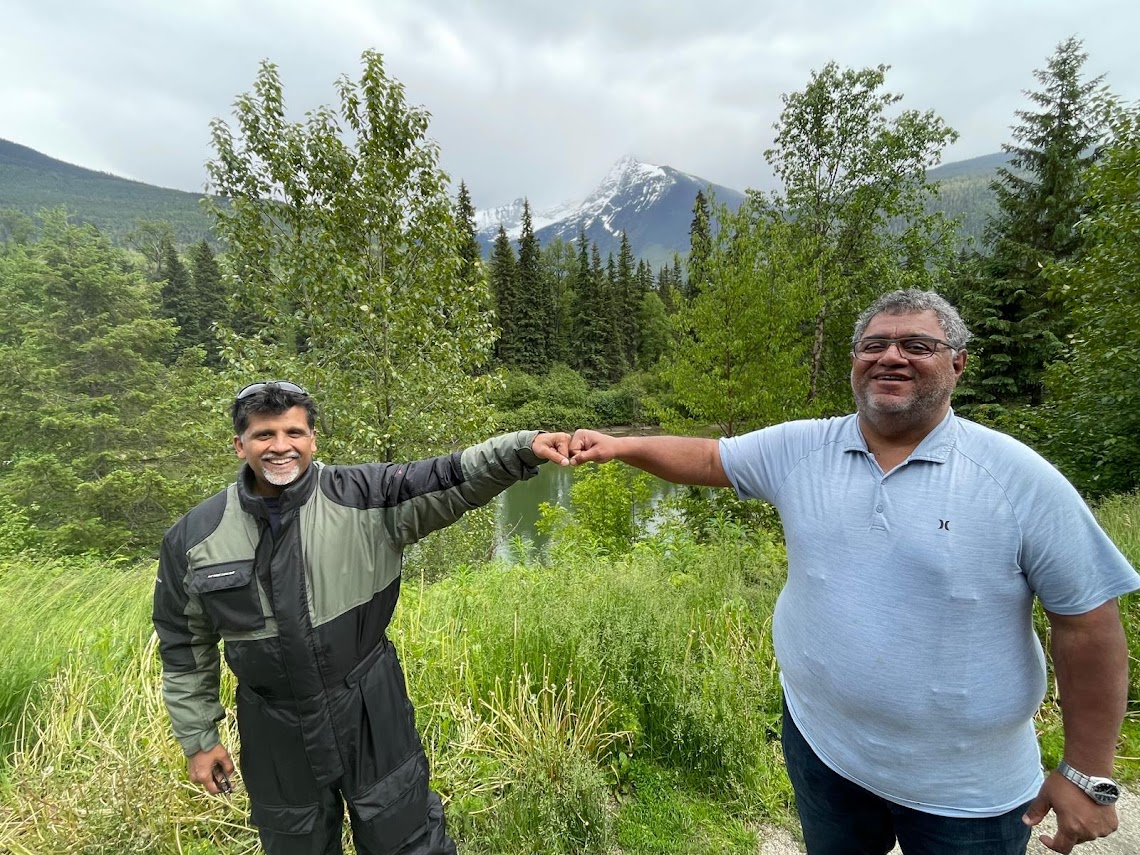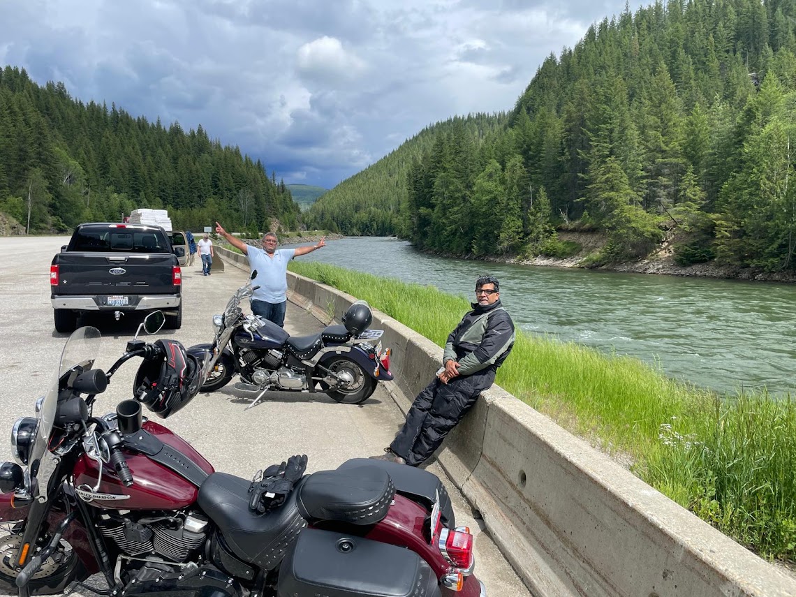 The next morning Zain cooked up some spicy shakshuka and we headed out after unloading the bikes and returning the trailer at the local U-Haul. We headed into the Rockies making our way towards Valemount. The route is very scenic and we had an enjoyable ride till we hit some rain on the way. After a short break we rode though the inclement weather as suggested by a couple of bikers we met coming the other way at the rest stop. We had booked rooms at the ‘Canada’s Best Value Inn‘ in Valemount, after checking we set up our barbeque in the parking lot and had an enjoyable evening grilling, chatting and just relaxing after a good ride. Valemount is a good base for outdoors adventures, hiking, rafting and cycling in the summers and skiing in the winters in the surrounding mountains.